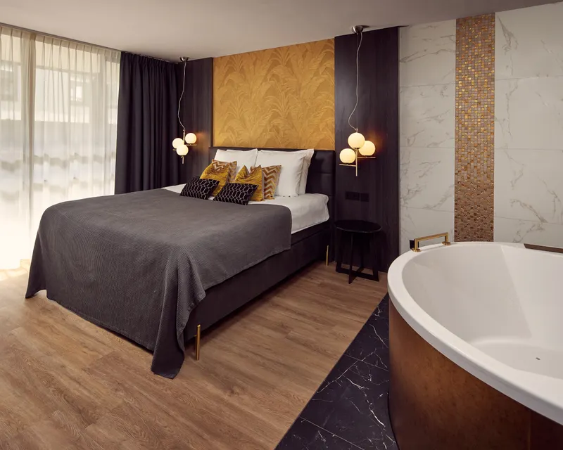In this new suite you will experience ultimate luxury. You imagine yourself in Las Vegas in this beautiful suite with all amenities. Enjoy the luxurious open bathroom with a large round whirlpool bath and a double steam shower. After you have experienced this luxury you can relax in the living room. The suite has two Mediasuite 4K smart TVs.